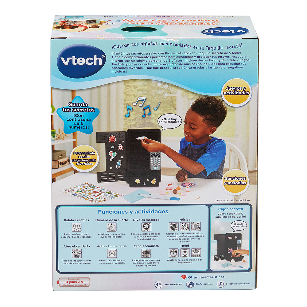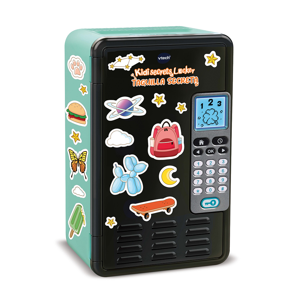 Una taquilla personalizable y 100% protegida y secreta que se desbloquea con un código secreto. Pantalla LCD, teclado, 10 melodías incluidas y 2 hojas de pegatinas incluidas.