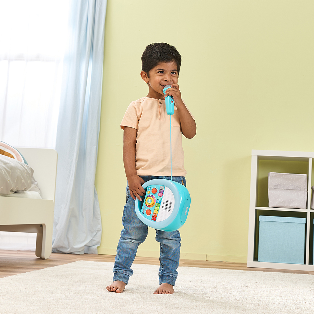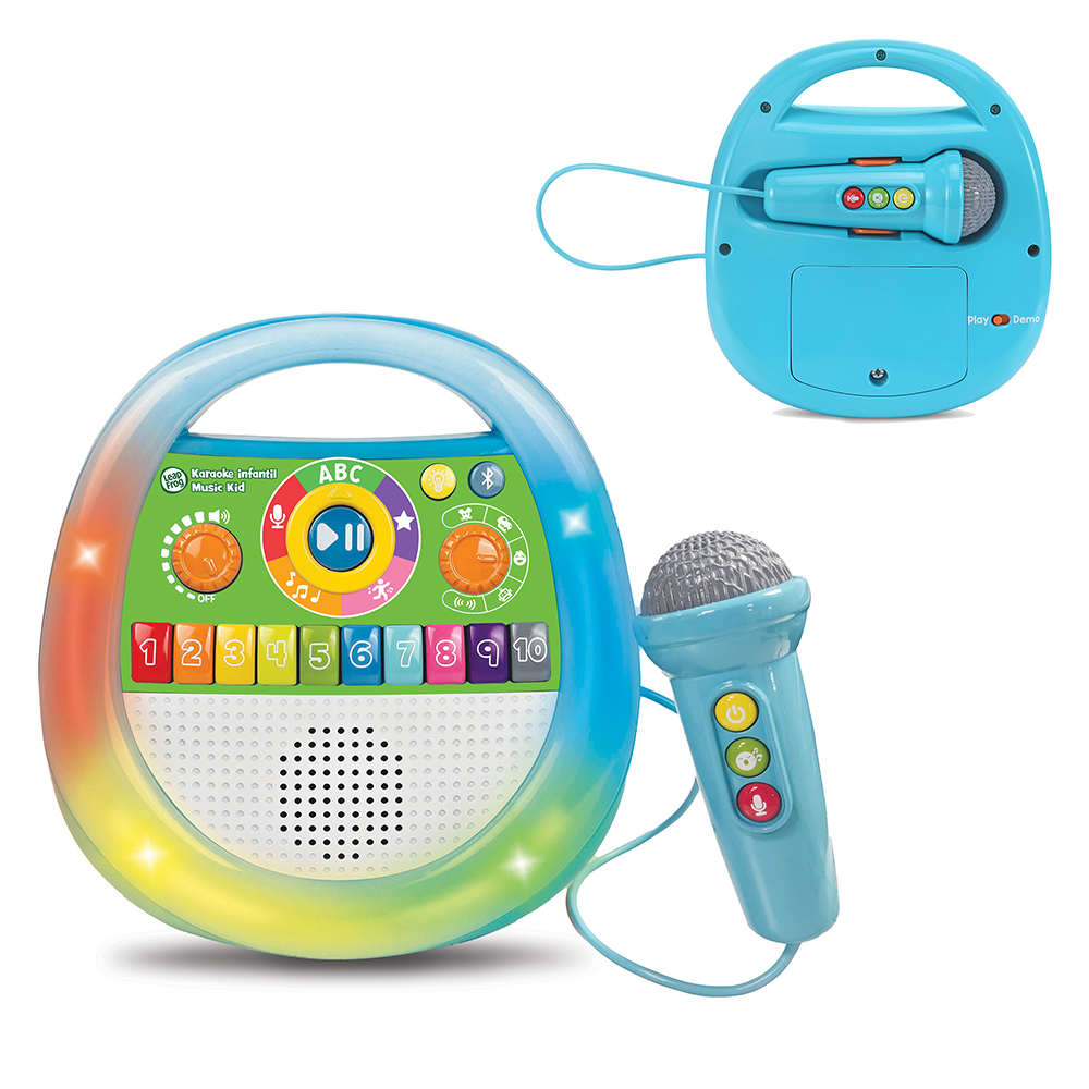 Karaoke infantil con luces y micrófono. Juguete para niños a partir de 2 años. Este mini-escenario pone a tu peque al frente del espectáculo: 30 canciones y 10 melodías (educativas, tradicionales, para bailar y relajarse) iluminan el panel mientras el micrófono capta cada nota.