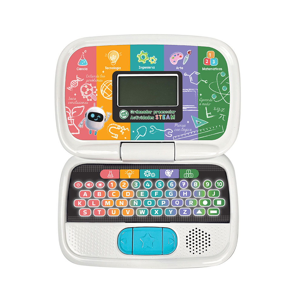 Ordenador preescolar STEAM para niños +3 años, con pantalla LCD retroiluminada y 5 modos de juego que inspiran curiosidad en ciencia, tecnología, ingeniería, arte y matemáticas.