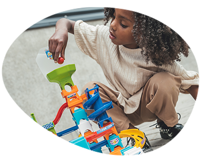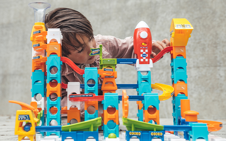 Ascensor, canica voladora, remolino, tramos de pista para inventar y... ¡pieza electrónica con efectos, luces y sonidos! 102 piezas y 10 canicas incluidas para construir numerosos pasajes secretos, interruptores y áreas de interacción. ¡Crea un escenario gigante!. Compatible con el resto de sets de Marble Rush.