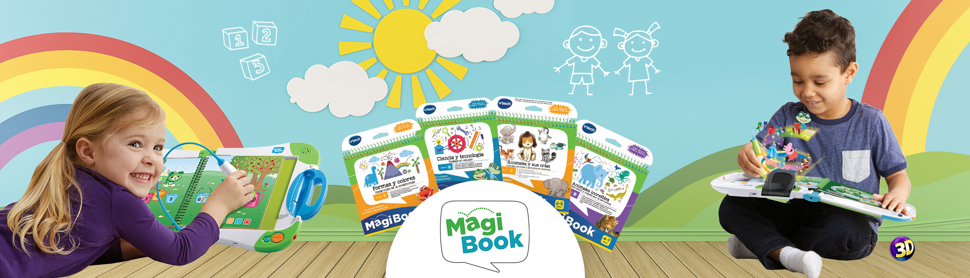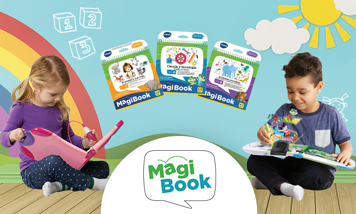 MagiBook es un sistema de aprendizaje interactivo, educativo e intuitivo para aprender mientras se divierten. Gracias al lápiz mágico, los libros cobran vida. Es fácil de usar para los más pequeños, solo tienen que presionar las ilustraciones de los libros interactivos para jugar y aprender. El niño aprende, desarrolla su sentido de observación y realiza muchas actividades divertidas.