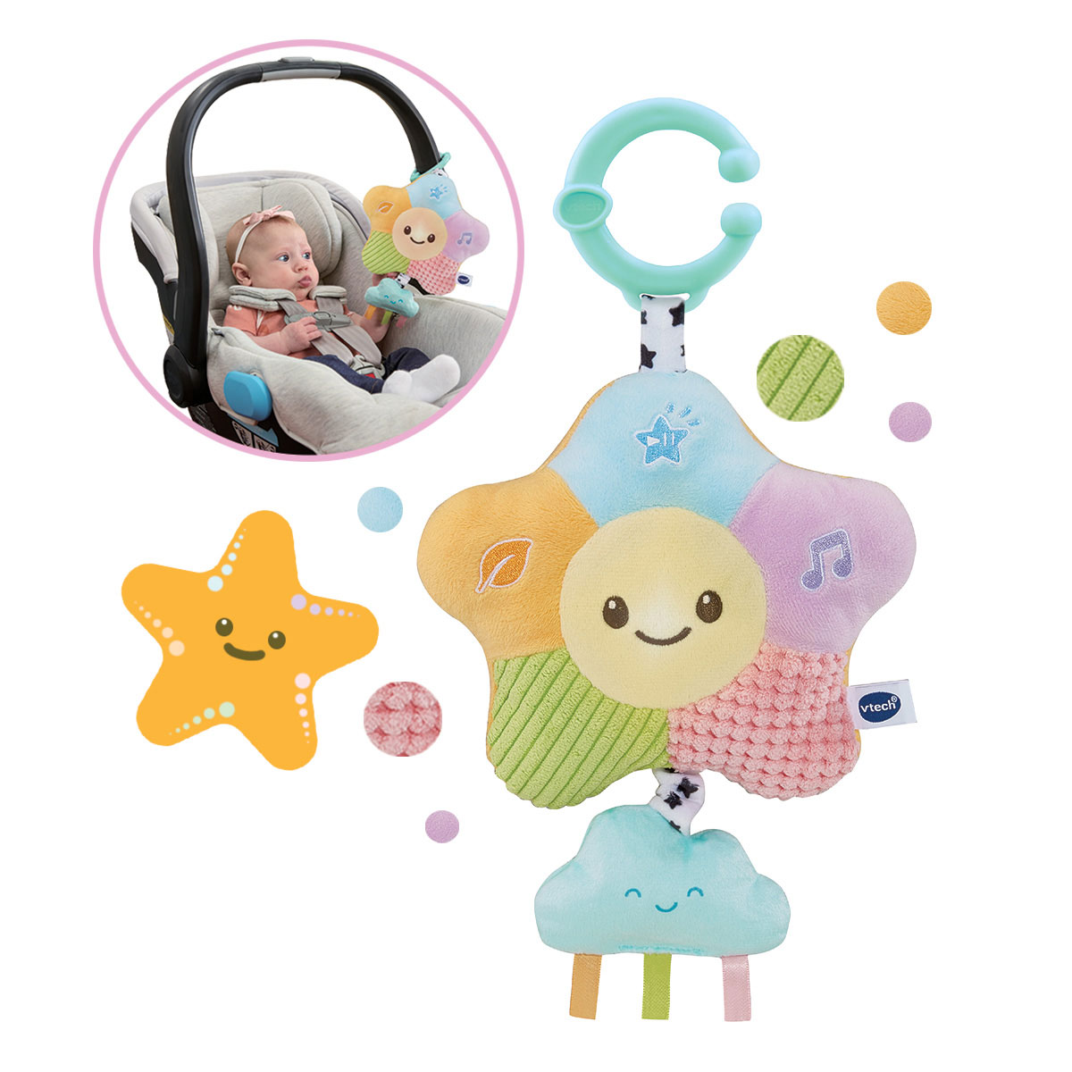Estrella de colores para colocar en el carrito, silla de paseo o el portabebés. Juguete para bebés +0 meses.