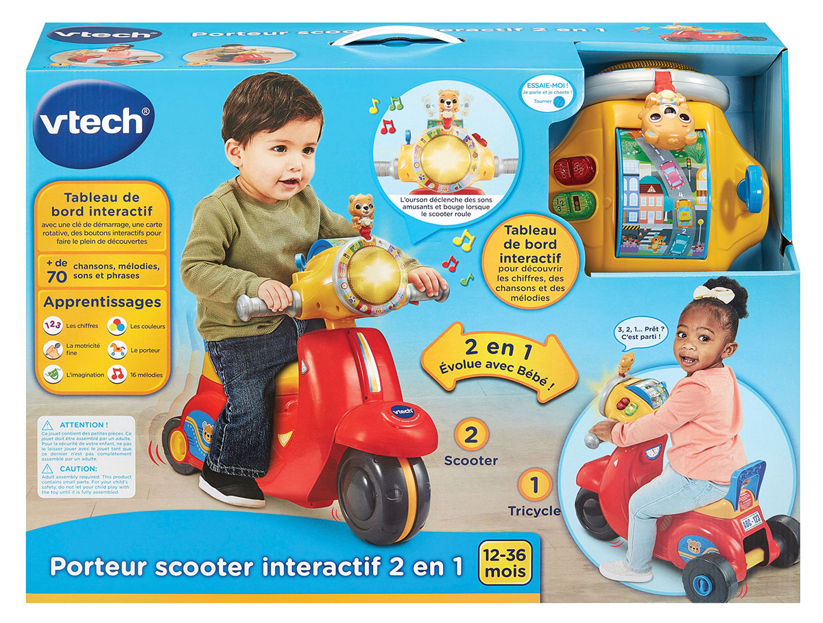 La Mi Scooter de Paseo 2 en 1 de VTech combina diversión y aprendizaje en una moto interactiva que crece con tu pequeño. Diseñada para ser utilizada como andador y montador, esta versátil scooter está llena de actividades que estimulan los sentidos y el desarrollo motor. Con canciones, melodías y frases educativas, convierte cada paseo en una experiencia llena de descubrimientos.