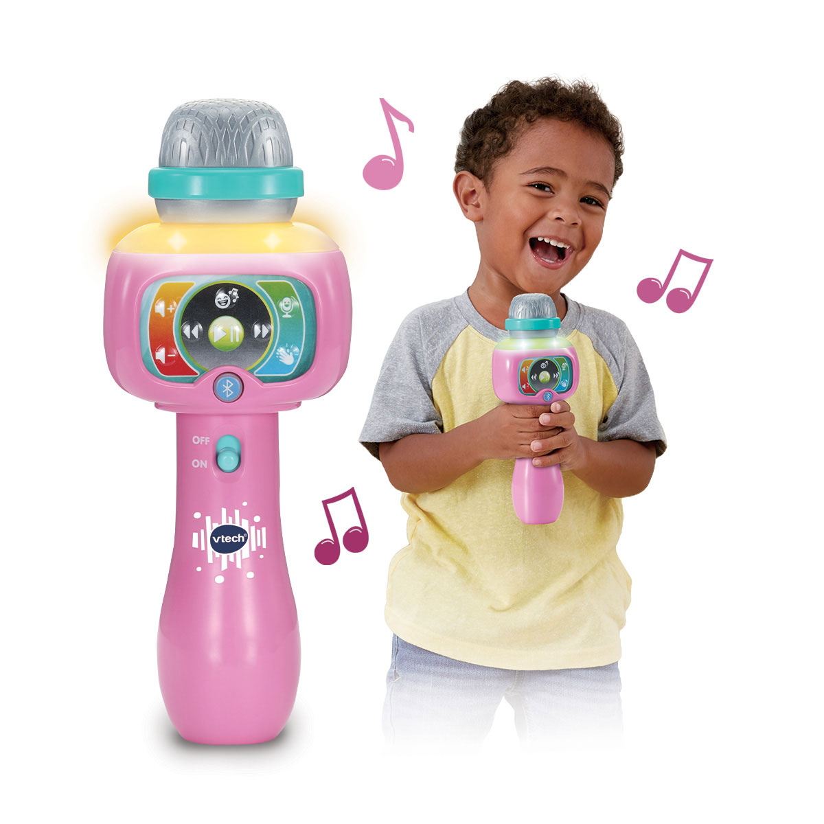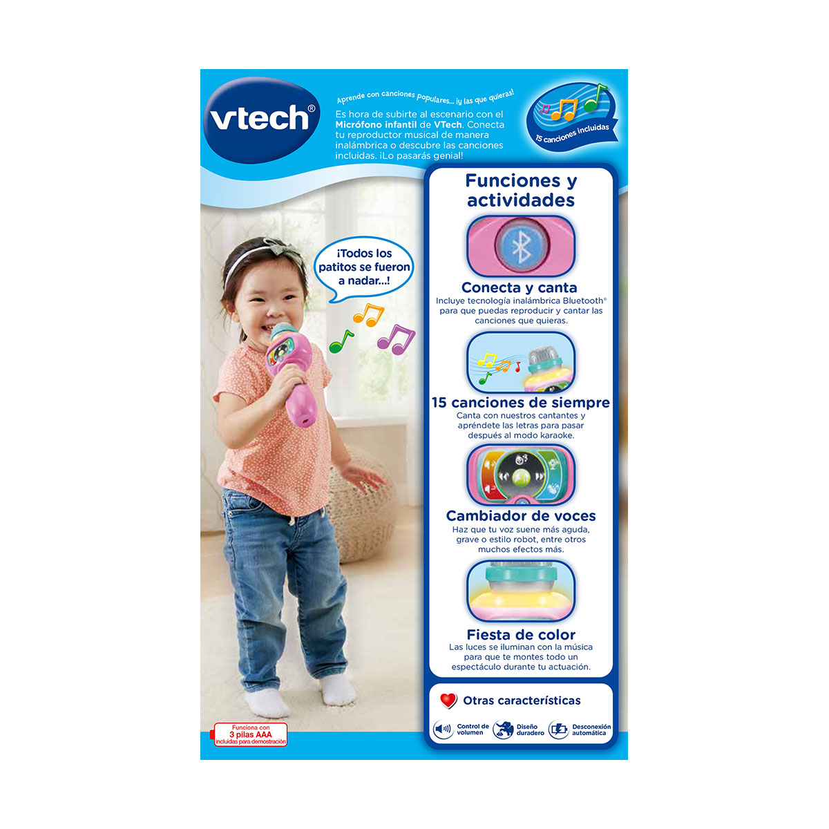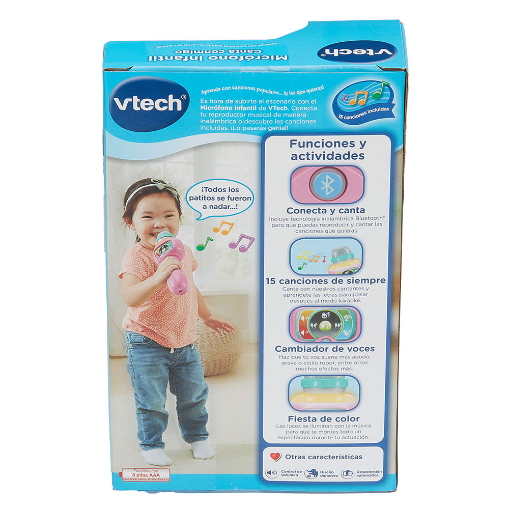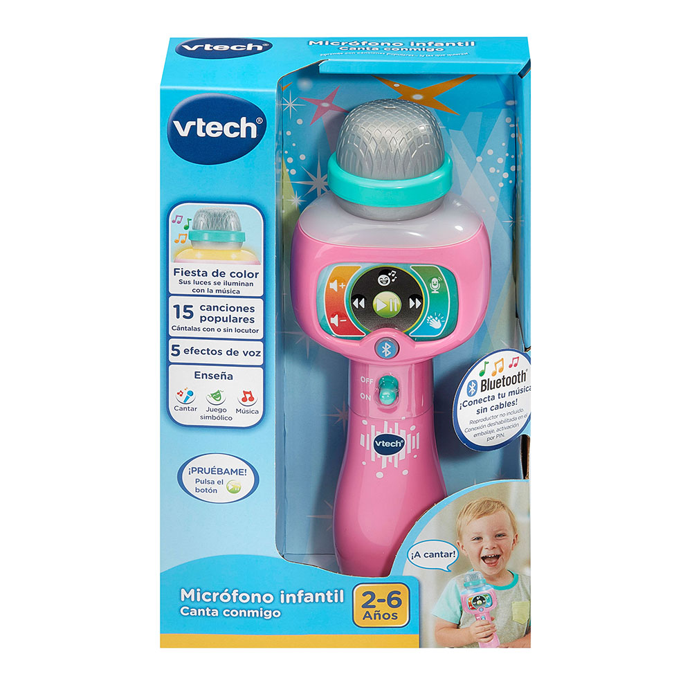 Micrófono infantil Canta conmigo, micrófono karaoke interactivo, conexión bluetooth, borra la letra de las canciones, voces distorsionadas y efectos de luz al compás de la música.